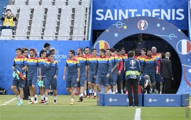 ސެއިންޓް-ޑެނިސްގެ ދަނޑުގައި ރޫމޭނިއާ ގައުމީ ފުޓްބޯޅަ ޓީމު ފަރިތަކުރުންތައް ކުރިއަށް ގެންދަނީ -- ފޮޓޯ: އޭޕީ