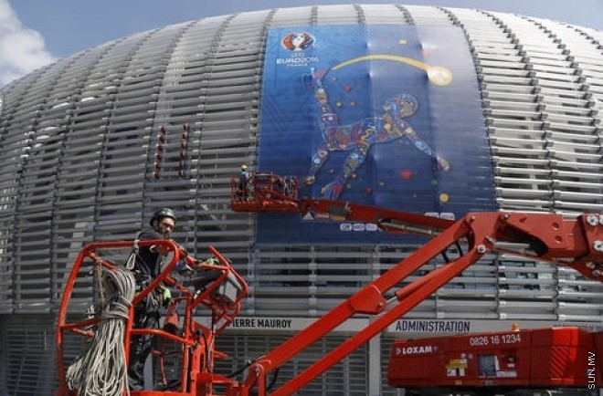 ފްރާންސްގެ ލިލްގައި ޔޫރޯ މެޗެއް ކުޅޭ ސްޓޭޑިއަމެއްގައި ބެނާއެއް ހަރުކުރުމުގެ މަސައްކަތް ކުރިއަށް ދަނީ -- ފޮޓޯ: އޭޕީ