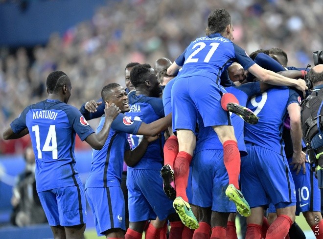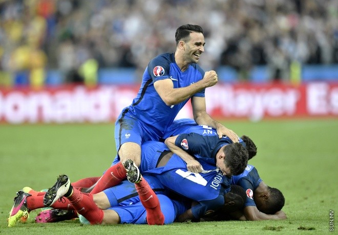 ޔޫރޯ 2016: ފްރާންސް ކުޅުންތެރީން ރޫމޭނިއާ ކޮޅަށް ލަނޑު ޖެހުމަށް ފަހު އުފާފާޅުކުރަނީ. ރޫމެނިއާ އަތުން މިރޭ ފްރާންސް މޮޅުވީ 2-1 ލަނޑުން-- ފޮޓޯ: އޭޕީ