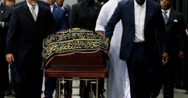 މުހައްމަދު އަލީގެ ޖަނާޒާގައި، މަރުހޫމް އަލްހާއްޖު މާލިކް އަލް ޝަބާޒް ނުވަތަ މެލްކަމް އެކްސްގެ ފަރާތުން، އޭނާގެ ދޮށީ ދަރިކަނބަލުން އަތާލާ ޝަބާޒް ވާހަކަ ދެއްކި އެވެ.