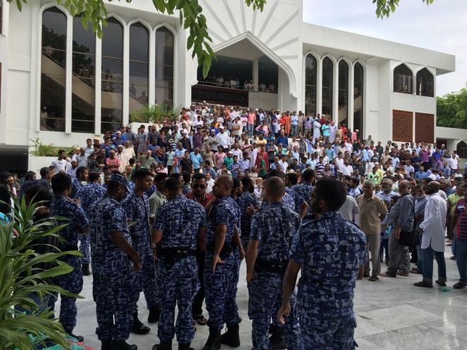 ފުލުހުން ރޭގައި ބުނީ މިސްކިތްތަކަކީ ހުރުމަތްތެރިވެގެންވާ މުގައްދަސް ތަންތަން ކަމަށްވެފައި މިސްކިތްތަކުގައި އަދި މިސްކިތް ހިމެނޭ ސަރަހައްދު ތަކުގައިވެސް ސިޔާސީ ހަރަކާތް ހިންގުމަކީ ޤާނޫނީ ގޮތުން މަނާ ކަމެއްކަމަށެވެ. އެހެންކަމުން މިސްކިތްތަކުގެ ސަރަހައްދުގައި ސިޔާސީ ހަރަކާތްތައް ހިންގަން ފުރުސަތު ނުދޭނެ ކަމަށް ފުލުހުން ބުންޏެވެ.