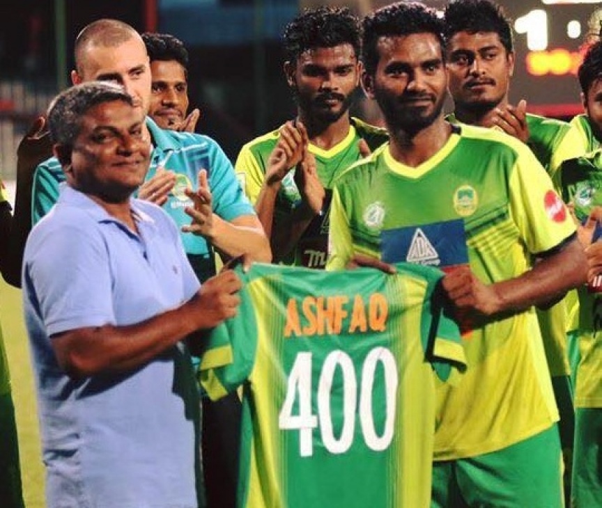 ރާއްޖޭގައި އުފެދުނު އެންމެ ހުނަރުވެއި އަދި އެންމެ ކާމިޔާބު ފުޓްބޯޅަ ކުޅުންތެރިޔާ އަލީ އަޝްފާގު (ދަގަނޑޭ) އޭނާގެ ކެރިއަރުގެ ސީނިއަރ ލެވެލްގައި 400 ވަނަ ލަނޑު ކާމިޔާބު ކޮށްފިއެވެ.