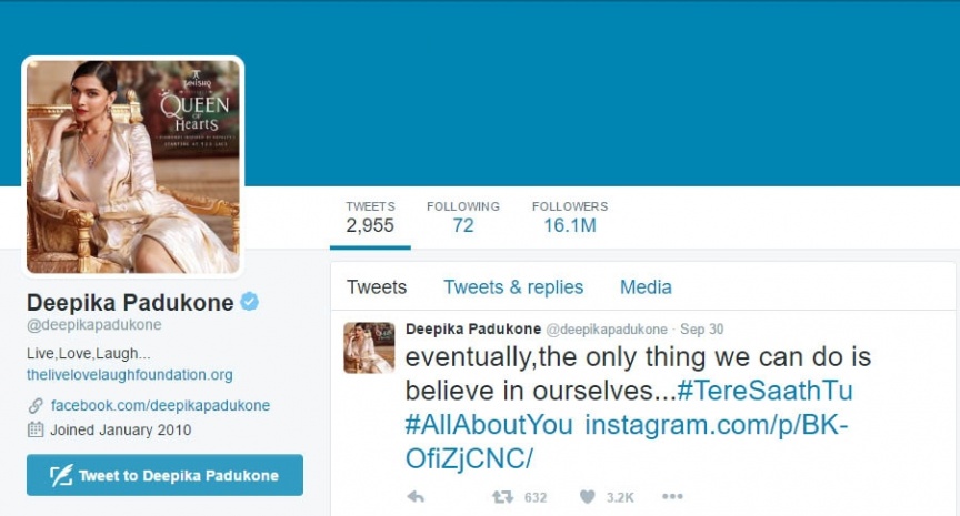 ދީޕިކާގެ ޓުވިޓާ ފޮލޮވަރުންގެ އަދަދު 16 މިލިއަނަށް އަރައެވެ.