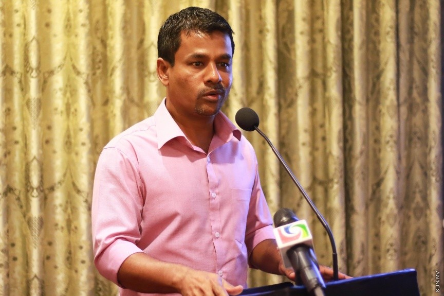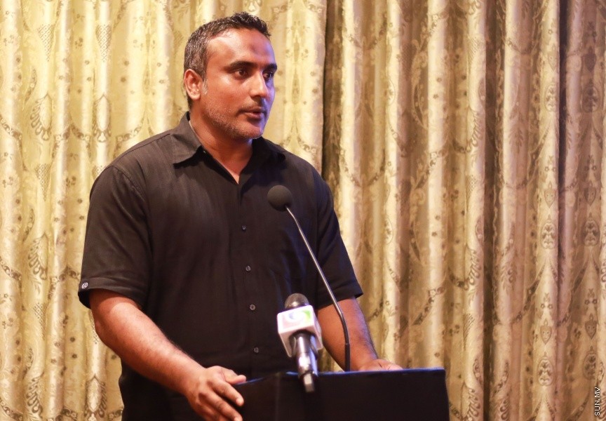 ފެހި ވާހަކަ ޕްރޮގްރާމް ލޯންޗު ކުރުމަށް ބޭއްވި ރަސްމިއްޔާތުގައި ނާޒިމް ވާހަކަފުޅު ދައްކަވަނީ --- ސަން ފޮޓޯ/ އިހްތިޝާމް މުހައްމަދު