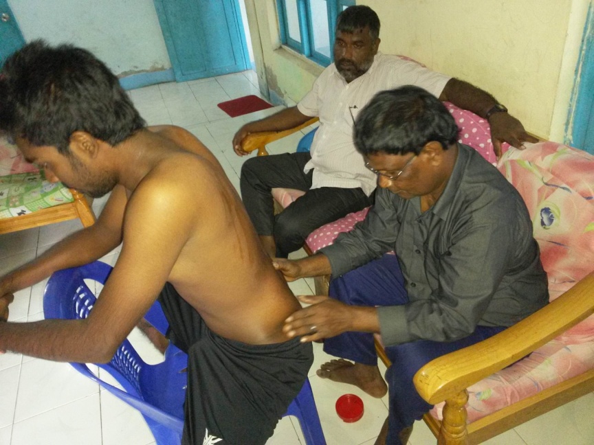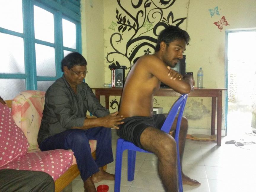 އޭނާ ބުނި ގޮތުގައި ގައިން ހަންފޮށި ފާރުވެފައިވާ ދެ މީހަކަށް ހާލިދު ސައިބޯ ހަކުރު ހާކައިގެންނާއި ދަވާދު ހާލައިގެން ދިން ފަރާއަކުން އެ ދެމީހުން ރަނގަޅުވި އެވެ.