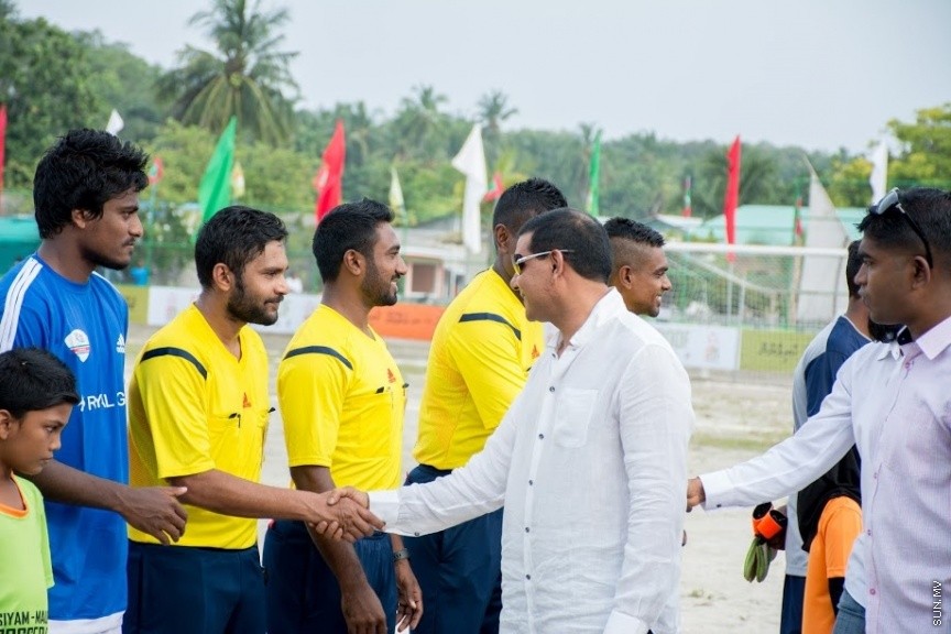 މިއަދު ހަވީރު ކުރިއަށްދިޔަ އެ މުބާރާތުގެ ފެށުމުގެ ކުލަގަދަ ރަސްމިއްޔާތުގައި ސިޔާމްއާއި މައުރޫފްގެ އިތުރުން މޯލްޑިވްސް މޯލްޑިވްސް ޑިވެލޮޕްމަންޓް އެލަޔަންސް (އެމްޑީއޭ)ގެ ނައިބު ލީޑަރު އައިޝަތު ރަފިއްޔާ އަދި ފުޓްބޯލް އެސޯސިއޭޝަން އޮފް މޯލްޑިވްސް (އެފްއޭއެމް)ގެ ރައީސް ބައްސާމް އަދީލް ޖަލީލް ބައިވެރިވެ ވަޑައިގެންނެވި އެވެ.