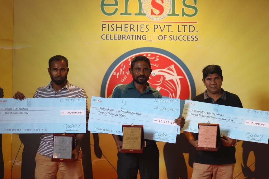 މިއަދު ވަނީ އެންމެ ގިނައިން ބޮޑު ކަންނެލިމަސް ކިރުވި ތިން ދޯންޏަކަށް ވެސް އިނާމާއި ހަނދާނީ ފިލާ ހަވާލުކޮށްފަ އެވެ. އެ ފަރާތްތަކަށް އިނާމާއި ހަނދާނީ ފިލާ ހަވާލުކޮށްދެއްވީ އެކްސިސް ކުންފުނީގެ އިސްވެރިންނެވެ.