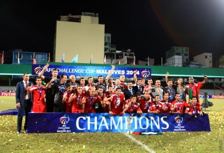 ރާއްޖޭގައި ބޭއްވި އޭއެފްސީ ކަޕް 2014ގެ ތަށި ފަލަސްތީނުން އުފުލާލަނީ --- ސަން ފައިލް ފޮޓޯ