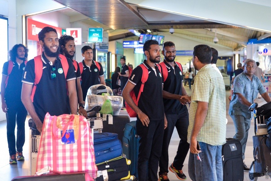 ތައިލެންޑްގައި ކޭމްޕް ކުރުމަށްފަހު ގައުމީ ވޮލީ ޓީމު އެނބުރި ރާއްޖެ އައުން: ތައިލެންޑްގައި ގައުމީ ވޮލީ ޓީމު އެކުވެރިކަމުގެ ހަ މެޗު ކުޅުނު --- ސަން ފޮޓޯ/ މުހައްމަދު އަފްރާހް
