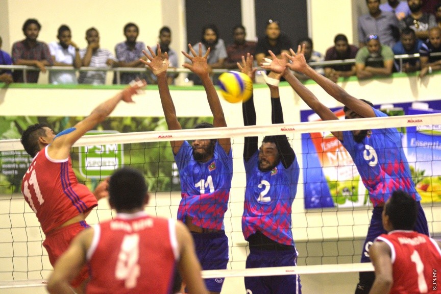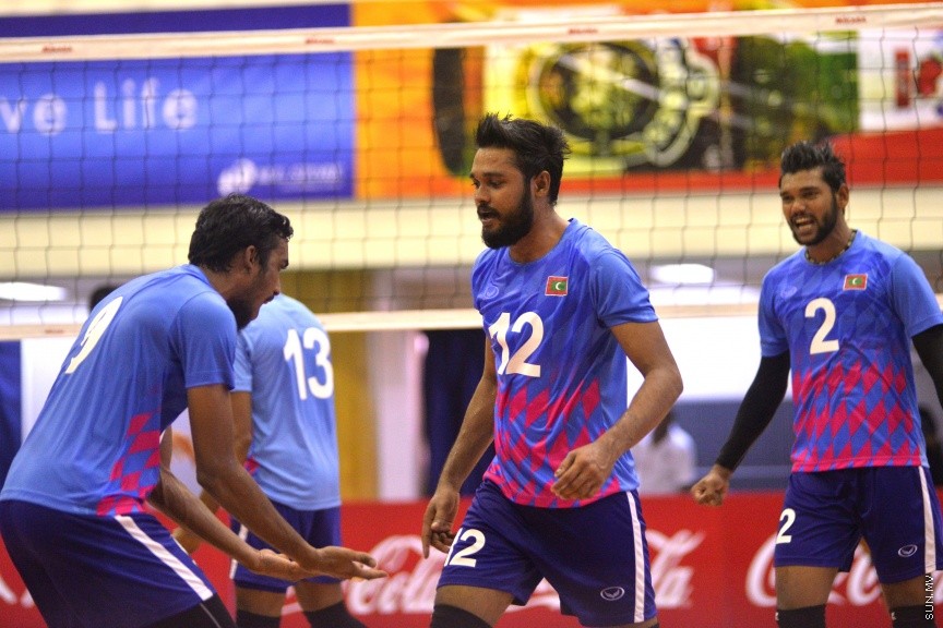 އޭޝިއަން ސެންޓްރަލް ޒޯން ވޮލީބޯޅަ މުބާރާތުގައި ރާއްޖެއާއި ނޭޕާލް ބައްދަލުކުރި މެޗުގެ ތެރެއިން: އެ މެޗުން ރާއްޖެ ބަލިވީ 3-1 ސެޓުން --- ސަން ފޮޓޯ/ މުހައްމަދު އަފްރާހް