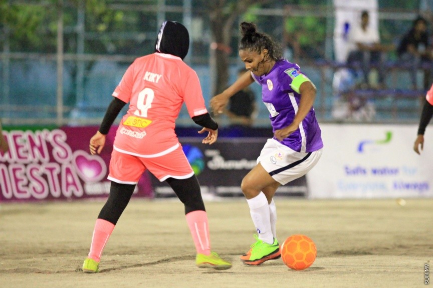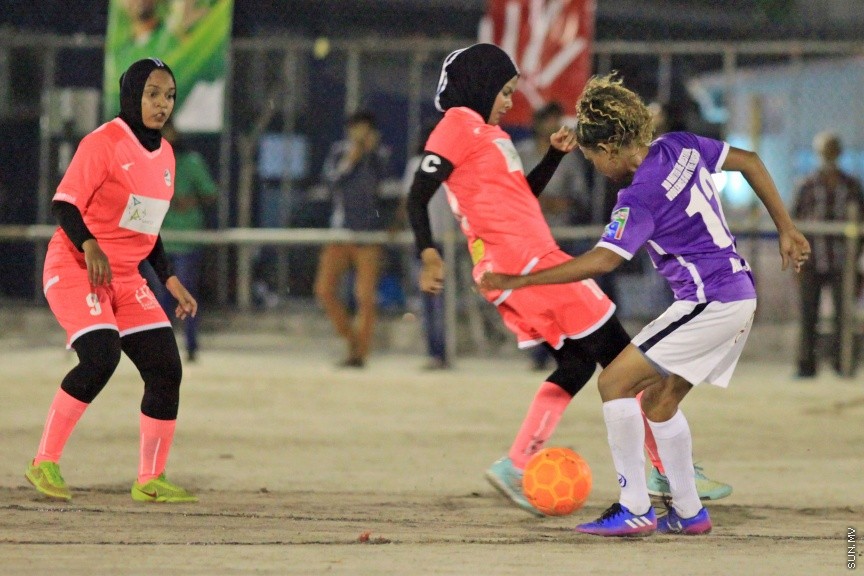 ވިމެންސް ފުޓްސަލް ފިއެސްޓާގައި އެމްއޭސީއެލްއާއި ޕޮލިސް ކްލަބު ބައްދަލުކުރި މެޗުގެ ތެރެއިން: އެ މެޗުން އެމްއޭސީއެލް މޮޅުވީ 6-3 ލަނޑުން --- ސަން ފޮޓޯ/ ފަޔާޒް މޫސާ