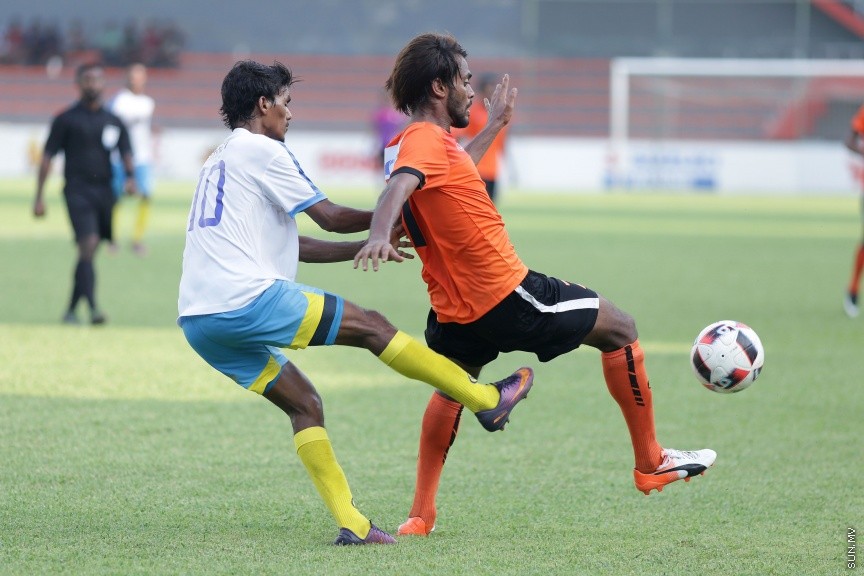 މާލޭ ލީގުގައި އީގަލްސްއާއި ވެލެންސިއާ ބައްދަލުކުރި މެޗުގެ ތެރެއިން: އެ މެޗުން އީގަލްސް މޮޅުވީ 3-0 ލަނޑުގެ ނަތީޖާއަކުން --- ސަން ފޮޓޯ/ ފަޔާޒް މޫސާ