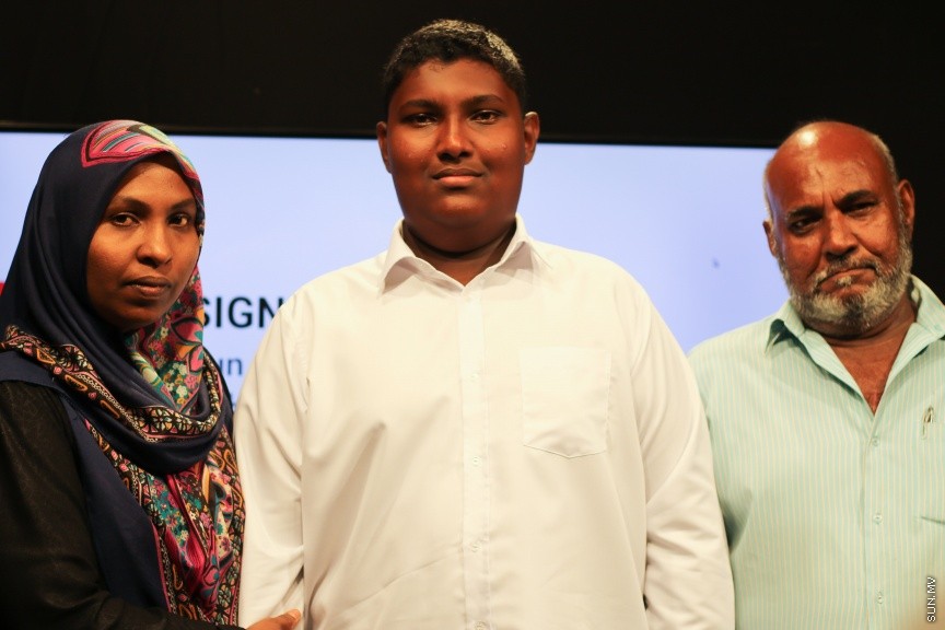ނަބީހް އޭނާގެ ބައްޕައާއި މަންމައާއެކު ---- ސަން ފޮޓޯ: އިހްތިޝާމް