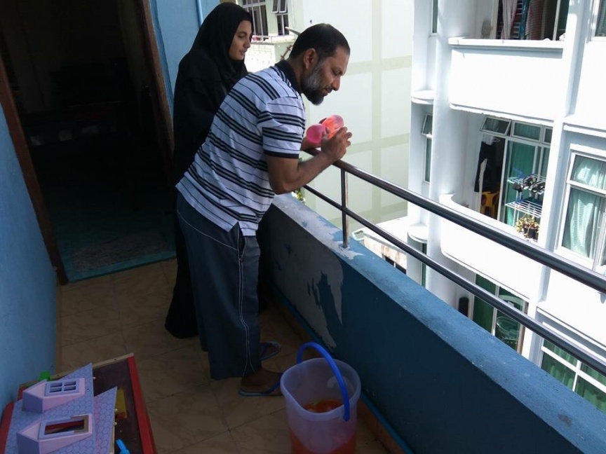 ސޯޝަލް މީޑިއާގައި ދައުރުވި ފޮޓޯތަކަކުން ފެންނަ ގޮތުގައި، އިމްރާން އޭނާ ދިރިއުޅުއްވާ އިމާރާތުގެ ބެލްކަނީއިން މިއަދު ހެނދުނު ވަނީ، މަގުމަތިން ދިޔަ ބައެއް މީހުންނަށް އަމާޒުކޮށް، ފެން ކޮތަޅު އުއްކަވައިފައެވެ.