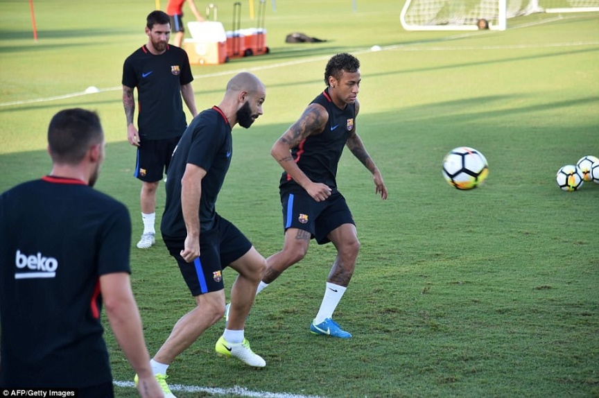 ބާސެލޯނާގެ ބްރެޒިލް ފޯވާޑް ނޭމާ، މިއާމީގައި އެ ޓީމުގެ ފަރިތަކުރުން ތަކުގެ ތެރޭގައި-- ފޮޓޯ: އީއެފްޕީ/ގެޓީ