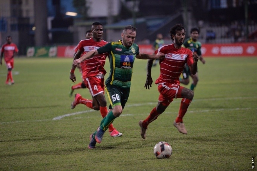 ދިވެހި ޕްރިމިއާ ލީގުގައި މާޒިޔާއާއި ދ. ކުޑަހުވަދޫ ބައްދަލުކުރި މެޗުގެ ތެރެއިން: އެ މެޗުން މާޒިޔާ މޮޅުވީ 4-0 ލަނޑުގެ ނަތީޖާއަކުން --- ސަން ފޮޓޯ/ މުހައްމަދު އަފްރާހް