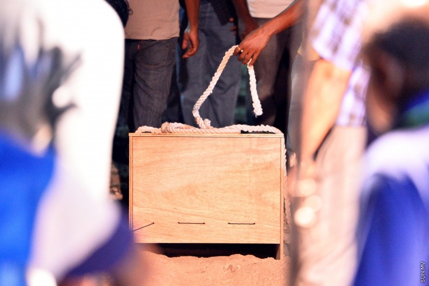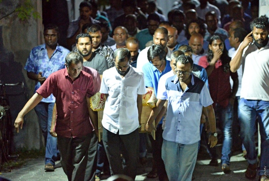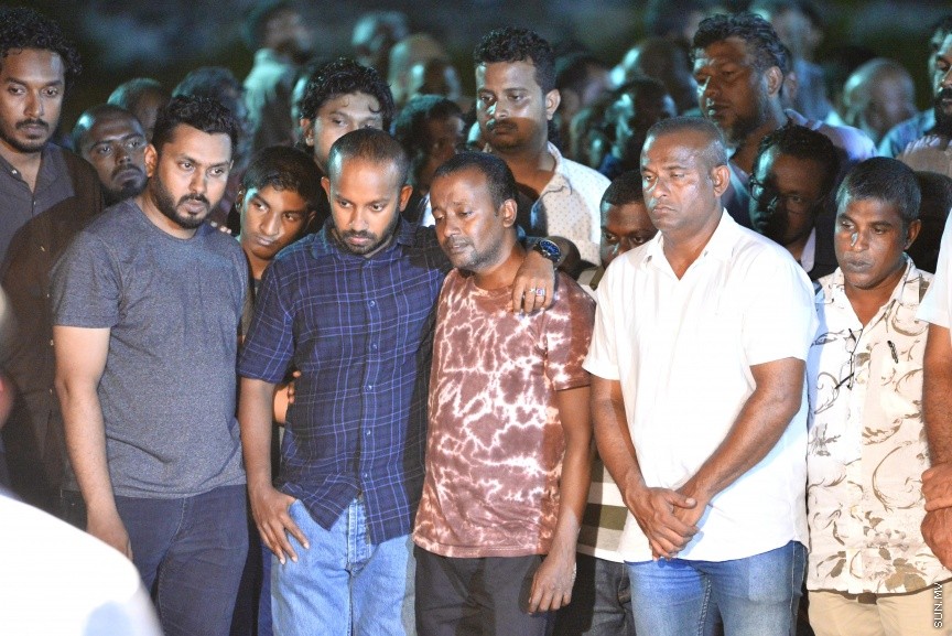 އިބްރާހިމް ރަޝީދު އާދަމްގެ ޖަނާޒާގައި އާއިލާގެ ބައެއް މެމްބަރުން --- ސަން ފޮޓޯ: ފަޔާޒު މޫސާ