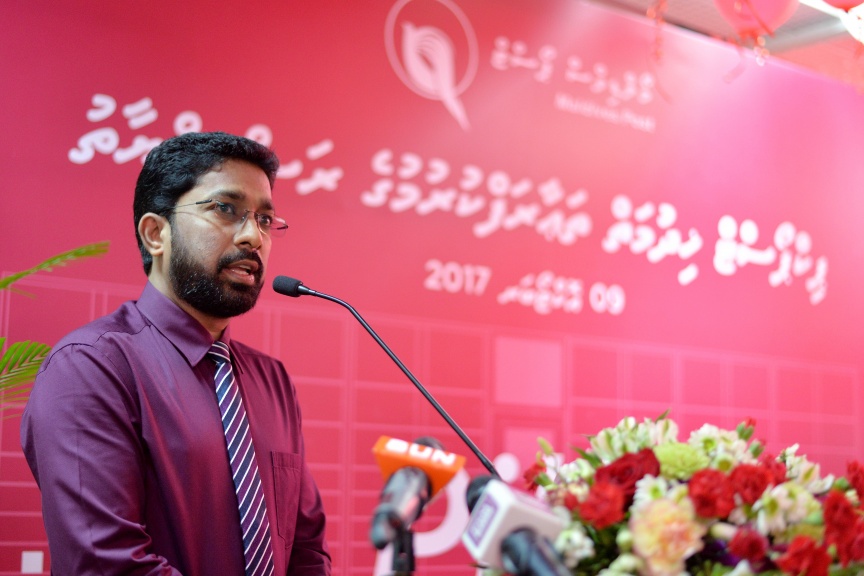 ޕިކް ޕޯސްޓް ސްޓޭޝަން ހުޅުވުމުގެ ރަސްމިއްޔާތުގައި ހޯމް މިނިސްޓަރު އަޒްލީން ވާހަކަފުޅު ދައްކަވަނީ -- ސަން ފޮޓޯ/ ފަޔާޒު މޫސާ