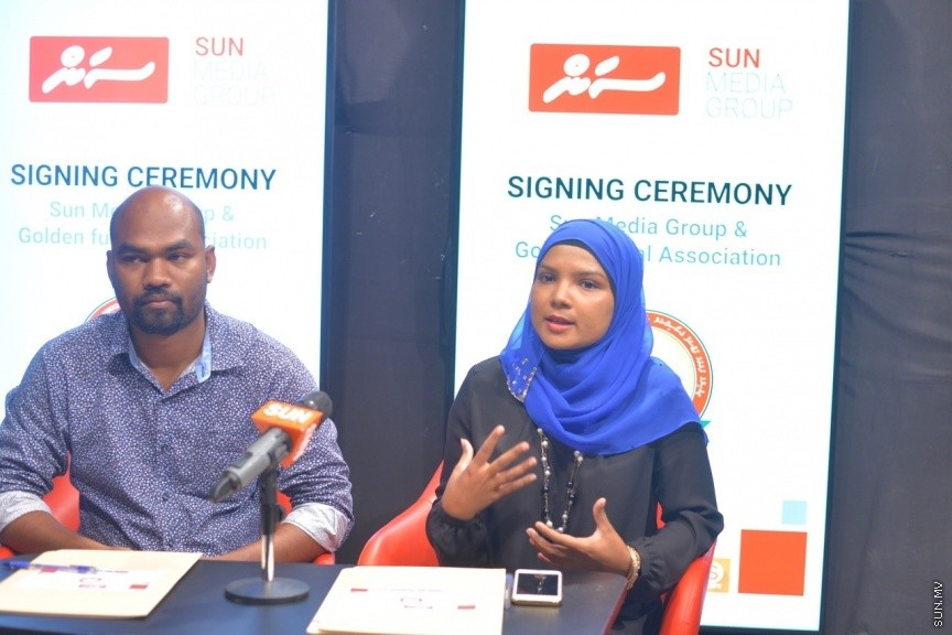 ގޯލްޑަން ފުޓްސަލް ޗެލެންޖް 2017ގެ އޮންލައިން މީޑިއާ ޕާޓްނަރަކަށް ސަން އޮންލައިން ހަމަޖެއްސުމަށް އެއްބަސްވުމުގައި ސޮއިކުރުމަށް ބޭއްވި ހަފްލާގެ ތެރެއިން --- ސަން ފޮޓޯ