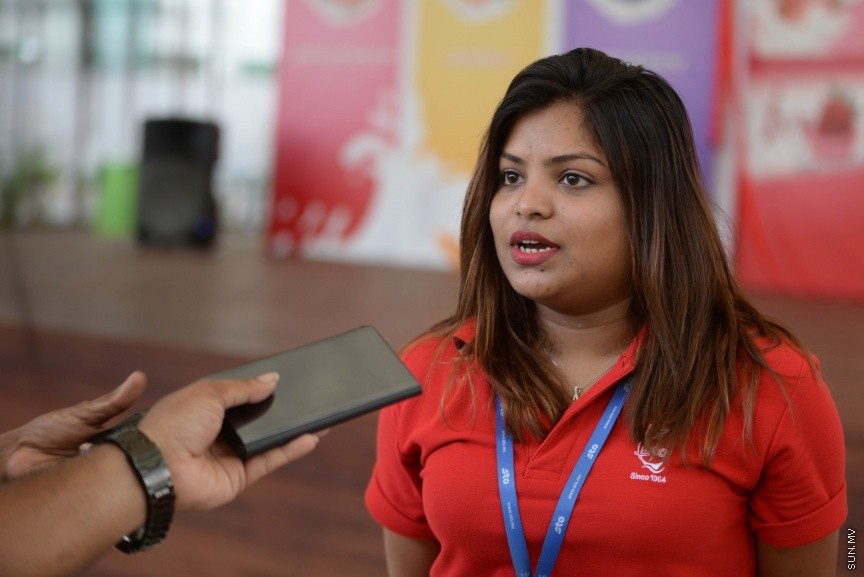 އެސްޓީއޯ ސުޕަމާޓުގެ މެނޭޖަރު ފާތިމަތު ފަނާޒާ ނޫސްވެރިންނަށް މައުލޫމާތު ދެއްވަނީ --- ސަން ފޮޓޯ/ މުަހައްމަދު އަފްރާހު