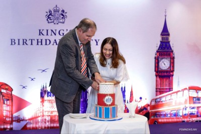އިނގިރޭސިވިލާތުގެ ރަސްގެފާނު ޗާލްސް 3ގެ އުފަންދުވަހާ ގުޅިގެން ރާއްޖޭގައި، ހޮޓެލް ޖެންގައި ބޭއްވި ރަސްމިއްޔާތު. ފޮޓޯ:ޕީއެސްއެމް
