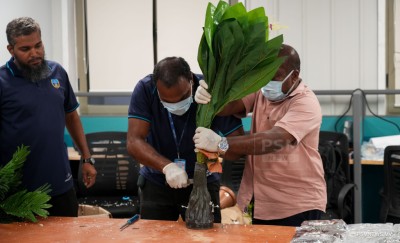 ކަސްޓަމްސްއިން ވިދާޅުވީ 18 ކިލޯގެ މަސްތުވާތަކެތީގެ މިއޮޕަރޭޝަންގައި މިތަކެތި އަތުލައިގެންފައިވަނީ ޕްލާސްޓިކް ގަސް ޕޮޓުތަކެއްގައި ވައިގެ މަގުން ރާއްޖެއަށް އެތެރެކުރަން އުޅުމުގެ ތެރޭގައިކަމަށާއި، އަތުލައިގަތް މަސްތުވާތަކެތީގެ މަގުމަތީ އަގު ގާތްގަނޑަކަށް 26 މިލިޔަން ރުފިޔާއަށް އަރާ - ފޮޓޯ: މުޙައްމަދު ވަޙީދު، ޕީއެސްއެމް ނިއުސް