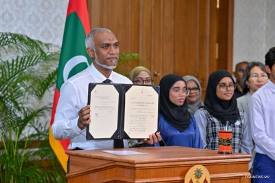 ދުންފަތުގެ ޖެނެރޭޝަނަލް ބޭން ކަނޑައަޅުއްވައި، ދުންފަތް ކޮންޓްރޯލްކުރުމާބެހޭ ޤާނޫނަށް 2 ވަނަ އިޞްލާޙު ގެނައުމުގެ ބިލު ރައީސުލްޖުމްހޫރިއްޔާ ތަޞްދީޤުކުރެއްވުން / ފޮޓޯ: ރަައީސް އޮފީސް