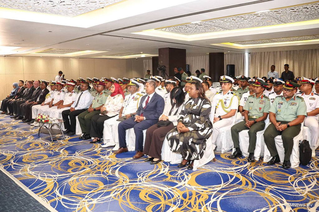ސްރީލަންކާ ކޯސްޓް ގާޑުގެ ޑިރެކްޓަރ ޖެނެރަލް އެޑްމިރަލް ރޯހަން ޖޯސެފް "ދޯސްތީ" ތަމްރީނުތަކުގެ 17 ވަނަ އެޑިޝަން ރަސްމީކޮށް އިފްތިތާޙު ކުރުމަށް ބޭއްވި ރަސްމިއްޔާތުގައި ވާހަކަދައްކަވަނީ / ފޮޓޯ ޕީއެެސްއެމް