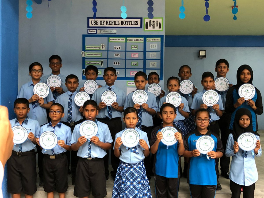 ފަރުކޮއި ޕްރޮގްރާމްގެ ދަށުން ޖަމާލުއްދީން ސްކޫލުން ވަނީ ރީފިލް ބޮޓަލް ބޭނުންކުރަން ނިންމައިފައި -- ފޮޓޯ: ޓުވިޓާ