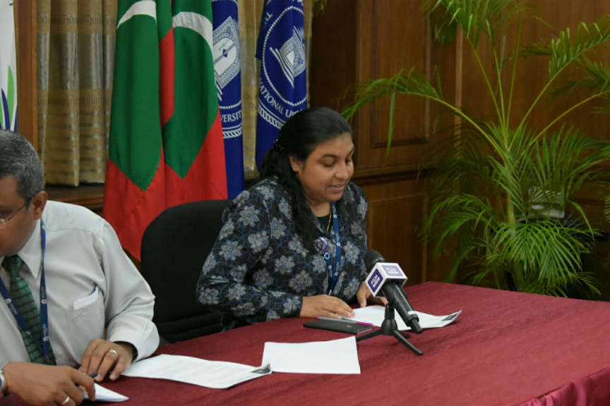 ގައުމީ ޔުނިވަރސިޓީގެ ދެވަނަ ބައިނަލްއަގުވާމީ ކޮންފަރެންސް "ތެވެލި" އާ ބެހޭގޮތުން މައުލޫމާތު ދިނުމަށް މިއަދު ބޭއްވި ނިއުސްކޮންފަރެންސްގެ ތެރެއިން-- ފޮޓޯ: ގައުމީ ޔުނިވާސިޓީ