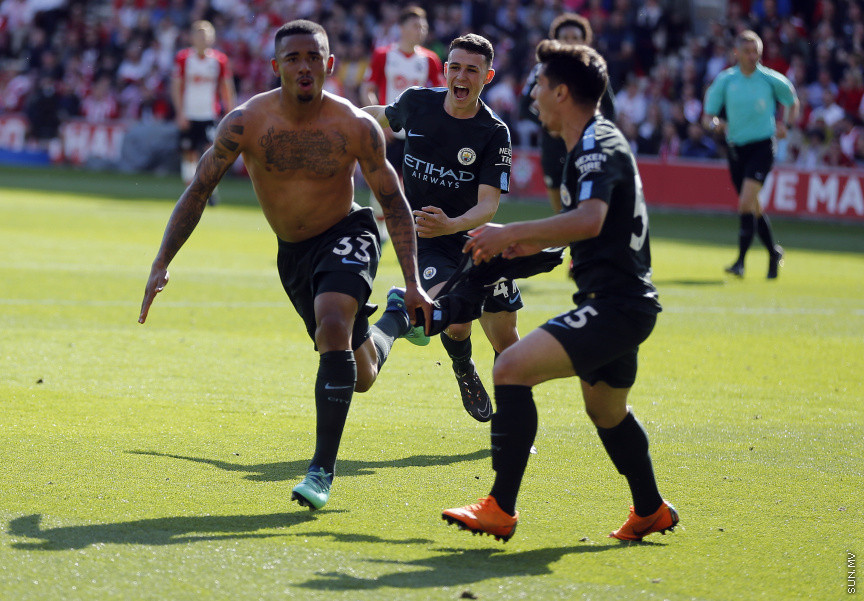 ސިޓީން ރޭގެ މެޗުގެ ފަހު ވަގުތުގައި ޖެހި ގޯލާއެކު ގެބްރިއަލް ޖީސަސް އުފާފާޅުކުރަނީ --- ފޮޓޯ/ އޭޕީ
