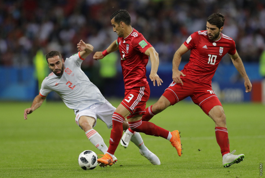 ރަަޝިއާގެ ކަޒާން އެރީނާގައި ކުޅުނު މެޗު ސްޕެއިނުން ކާމިޔާބުކުރީ 1-0ގެ ނަތީޖާއަކުންނެވެ. މެޗުގައި އިރާންގެ ފަރާތުން ސްޕެއިންގެ ޑިފެންސަށް ބޮޑެތި އުނދަގޫތަކެއް ކުރިމަތިކޮށްފައިވެއެވެ.