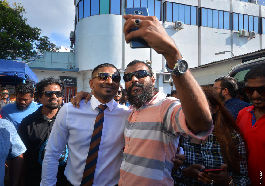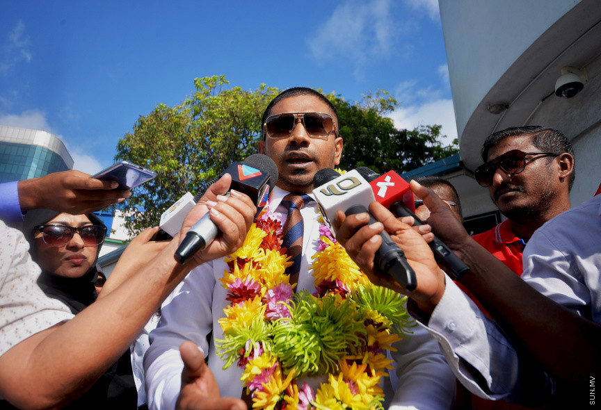 ކުރިމިނަލް ކޯޓުން މަހުލޫފު މިނިވަން ކުރުމަށް ފަހު އޭނާ މީޑިއާއާ ވާހަކަ ދައްކަވަނީ --- ސަން ފޮޓޯ: އަހުމަދު އަވްޝަން