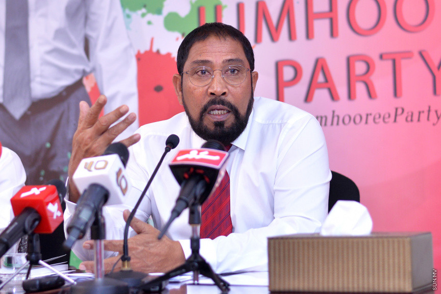 ރޭ ޖުމްހޫރީ ޕާޓީން ބޭއްވި ނޫސްވެރިންގެ ބައްދަލުވުމުގައި ގާސިމް ވާހަކަ ދައްކަވަނީ: އޭނާ ވިދާޅުވަނީ ކޯލިޝަންގެ ބަޔަކާ ހިލާފު ވުމަކީ މުޅި ކޯލިޝަން ރޫޅުމެއް ނޫން ކަމަށް -- ސަން ފޮޓޯ/ އަހްމަދު އަވްޝަން އިލްޔާސް