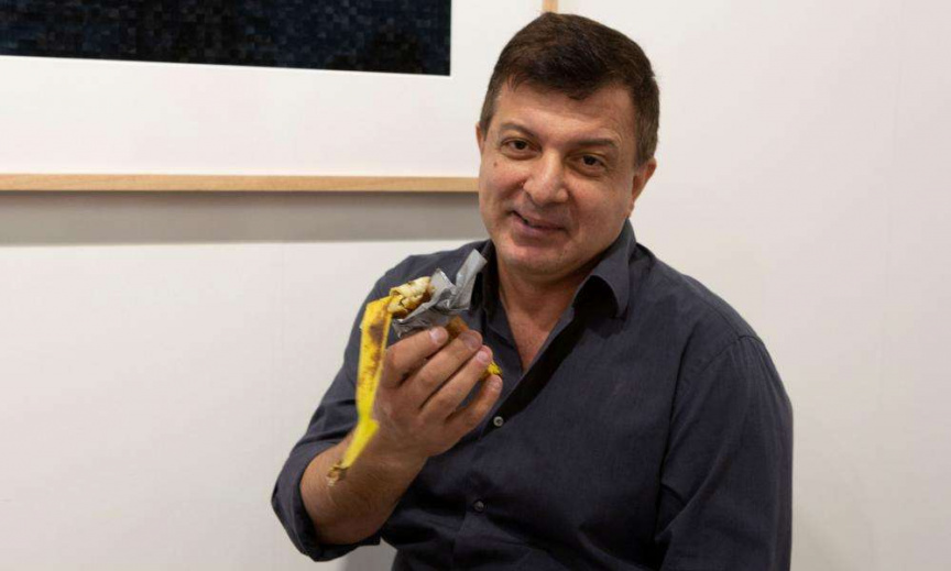 "ކޮމީޑިއަން"ގެ ނަމުން ނަން ދެވިފައިވާ އެ އާޓްވޯކް އުފައްދާފައިވަނީ އިޓަލިއަން އާޓިސްޓެއް ކަމަށްވާ މޯރީޒިއޯ ކެޓެލަން އެވެ.