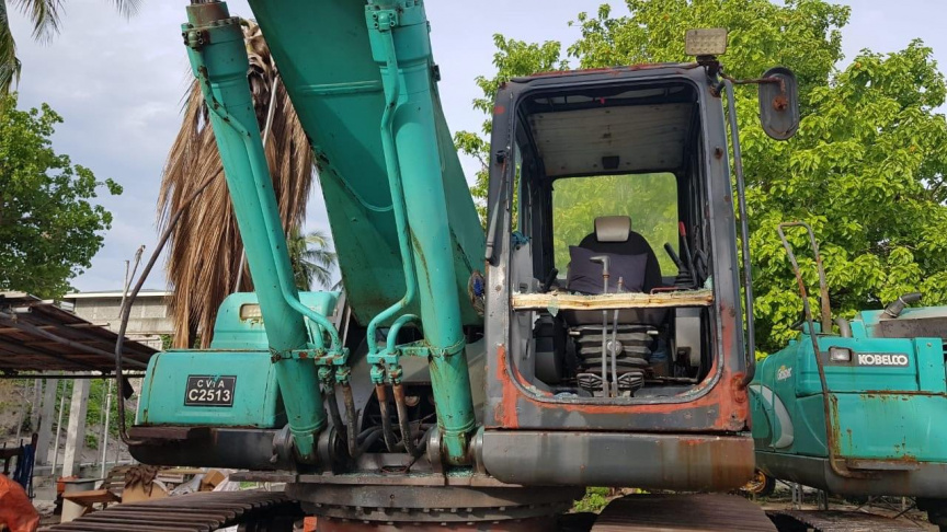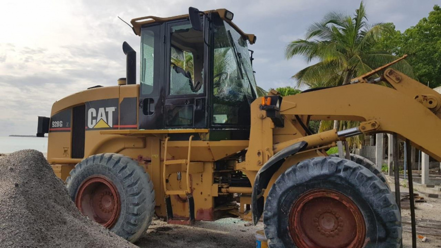 ބޮޑުފިނޮޅު ތަރައްގީ ކުރުމަށް އެ ރަށަށް ގެންގޮސްފައި ހުރި ހެވީ ވެހިކަލްތަކުގެ ބިއްލޫރިތައް ތަޅާލައި ގެއްލުން ދީފައި --- ފޮޓޯ: ފުލުހުން