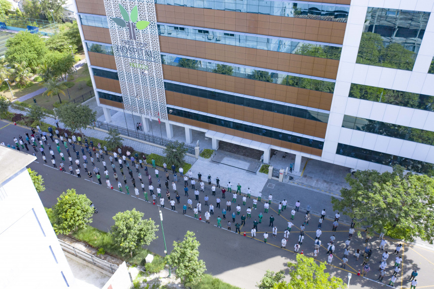 ހުއްޓުމެއް ނެތި ކޮވިޑް19ގެ އިންފެކްޝަން ފެތުރެމުންދިޔަ ނަމަވެސް، ޓްރީ ޓޮޕްގެ ހިދުމަތްތަކަށް ބުރޫއެއް އަޔަނުދިނުމަށްޓަކައި ގިނަ ހުރަސްތަކާއެކު މިފަދަ ދަތި ދުވަސްވަރެއްގައި ވެސް އެ ހޮސްޕިޓަލުގެ މުވައްޒަފުން ދަނީ ވަރުބަލިކަމެއް ނެތި މަސައްކަތް ކުރަމުންނެވެ.