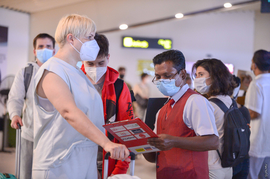 ޖުލައި 19، 2021: ފަތުރުވެރިން ރާއްޖޭ މައި އެއާ ޕޯޓްގައި -- ސަން ފޮޓޯ/ ފަޔާޒު މޫސާ