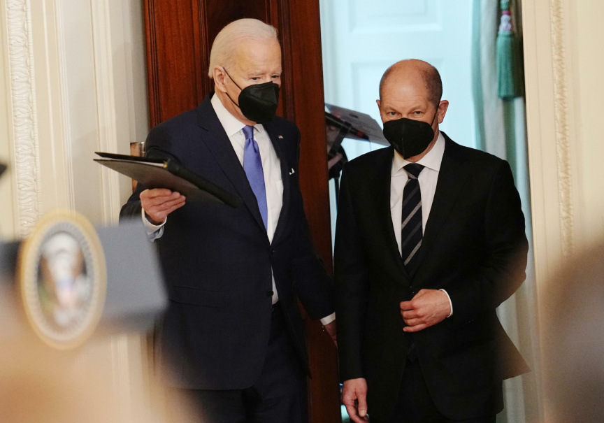 (ކ-ވ) ޖަރުމަނުގެ ޗާންސެލާ އޯލާފް ޝްކޯލްޒް އަދި އެމެރިކާގެ ރައީސް ޖޯ ބައިޑަން ---