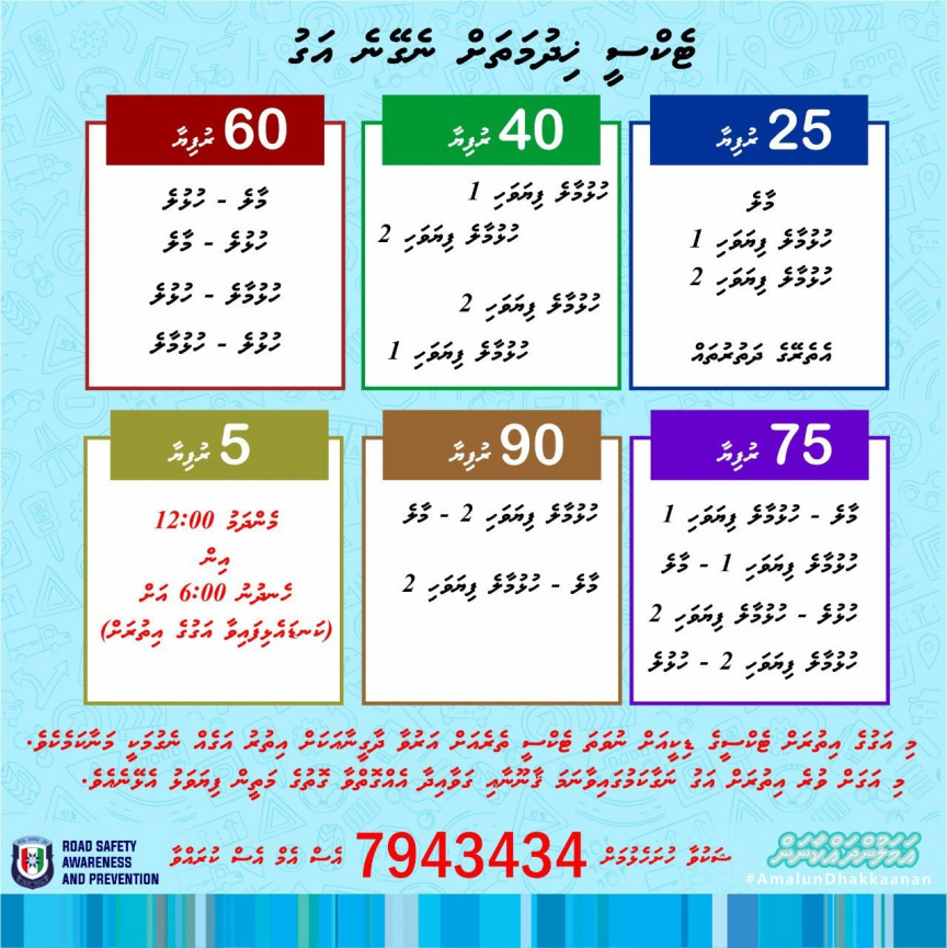މީގެ އިތުރުން، މާލެ އާއި ހުޅުމާލެ ފުރަތަމަ ފިޔަވައްސާ ދެމެދުގެ ދަތުރުތަކަށް އަދި ހުޅުލެއާއި ހުޅުމާލޭ ދެވަނަ ފިޔަވައްސަށް ނެގޭނީ 75 ރުފިޔާއެވެ.