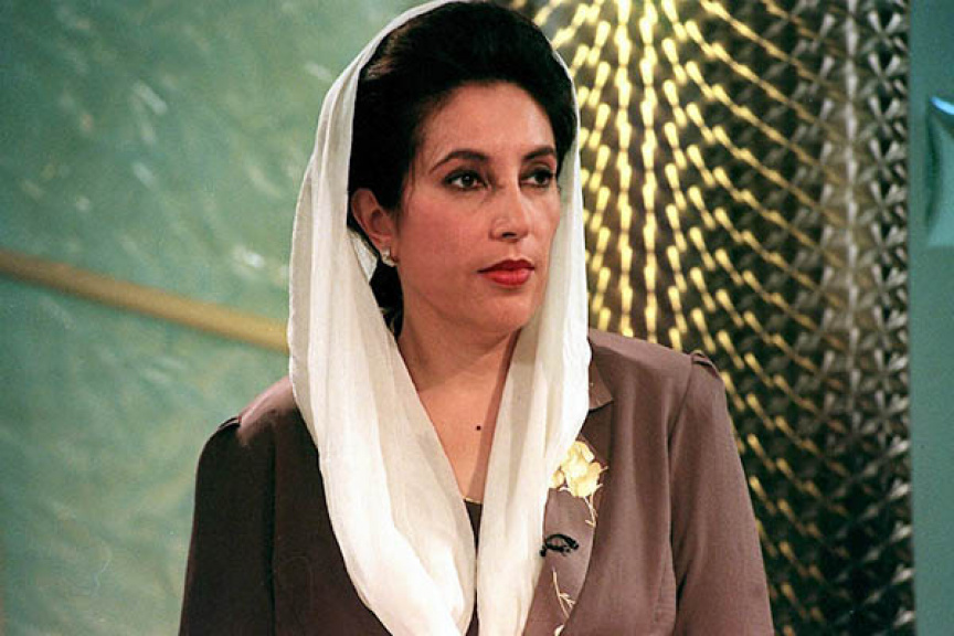 2007 ވަނަ އަހަރު ބޮމުގެ ހަމަލާއެއްގައި އަވަހާރަކޮށްލާފައިވާ ޕާކިސްތާނުގެ ކުރީގެ ބޮޑުވަޒީރު ބޭނަޒީރު ބުއްޓޫ (ޒުލްފިގާރު އަލީ ބުއްޓޫގެ ދަރިކަނބަލުން)