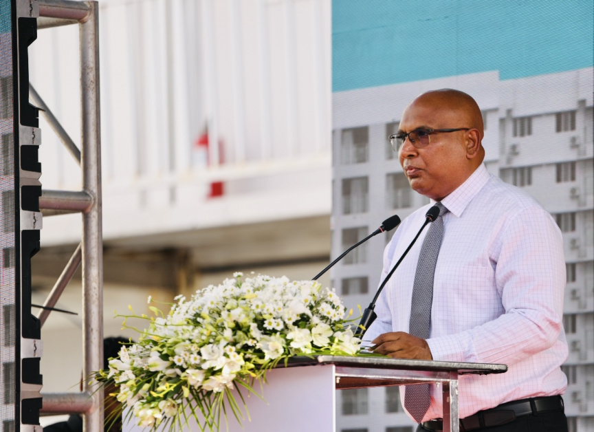 ވިނަރެސްގެ ދެ ޓަވަރާ އެޗްޑީސީން ރަސްމީކޮށް ހަވާލުވުމަށް ބޭއްވި ރަސްމިއްޔާތުގައި އެޗްޑީސީގެ އެމްޑީ ސުހައިލް އަހްމަދު ވާހަކަދައްކަވަނީ --- ސަންފޮޓޯ/ ނާއިލް ހުސައިން