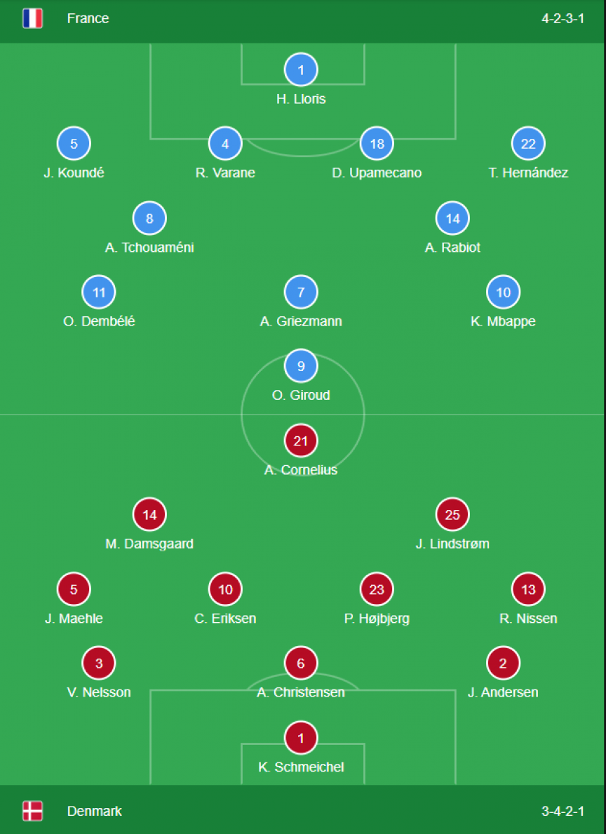 ވޯލްޑް ކަޕުގެ 23 ވަނަ މެޗުގެ ލައިވް ބްލޮގް: ފްރާންސް 2 - 1 ޑެންމާކް