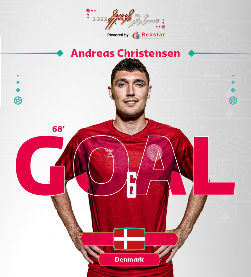 ޑެންމާކުން 68 ވަނަ މިނެޓުގައި ލަނޑެއް ޖަހައި ނަތީޖާ ހަމަހަމަ ކޮށްފި. އަންދްރެއާސް ކްރިސްޓެންސަން.