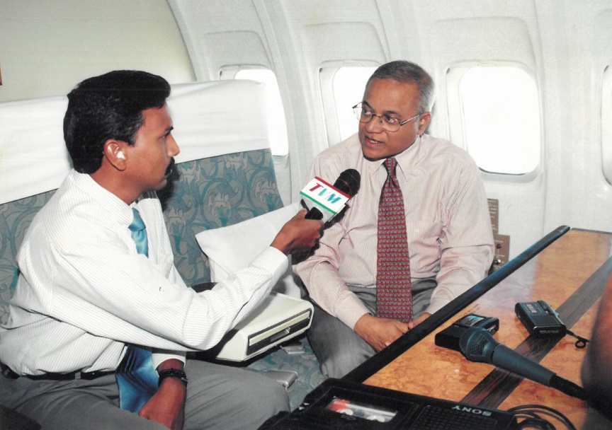 ޝިޔާމް ރައީސް މައުމޫނާ އިންޓަވިއު ކުރައްވަނީ: އޭނާ ވަނީ ނޫސްވެރިކަމަށް ވެސް ގިނަ ޚިދުމަތްތަކެއް ކޮށްދެއްވާފައި-- ފޮޓޯ: ޝިޔާމް