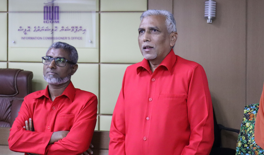 ޝިޔާމް އިންފޮމޭޝަން އޮފީހުގައި އޭނާއާއެކު މަސައްކަތް ކުރާ ހަސަން ޝާކިރާއެކު-- ފޮޓޯ: ޝިޔާމް
