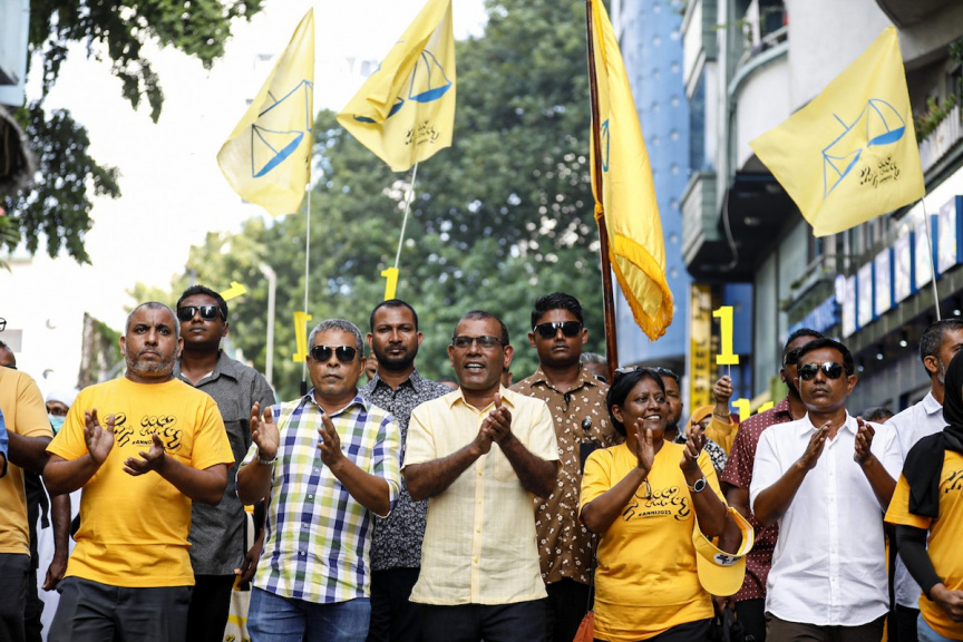 ރައީސް ނަޝީދުގެ ކެމްޕެއިންގެ އެންމެ ފަހު ހަރަކާތް ނިންމާލާފައިވަނީ މާލޭގައި ބޭއްވި ހިނގާލުމަކުންނެވެ. މި ހިނގާލުން ބާއްވާފައިވަނީ މާލޭގެ މަޖީދީ މަގާއި ބޮޑުތަކުރުފާނު މަގުގައެވެ.