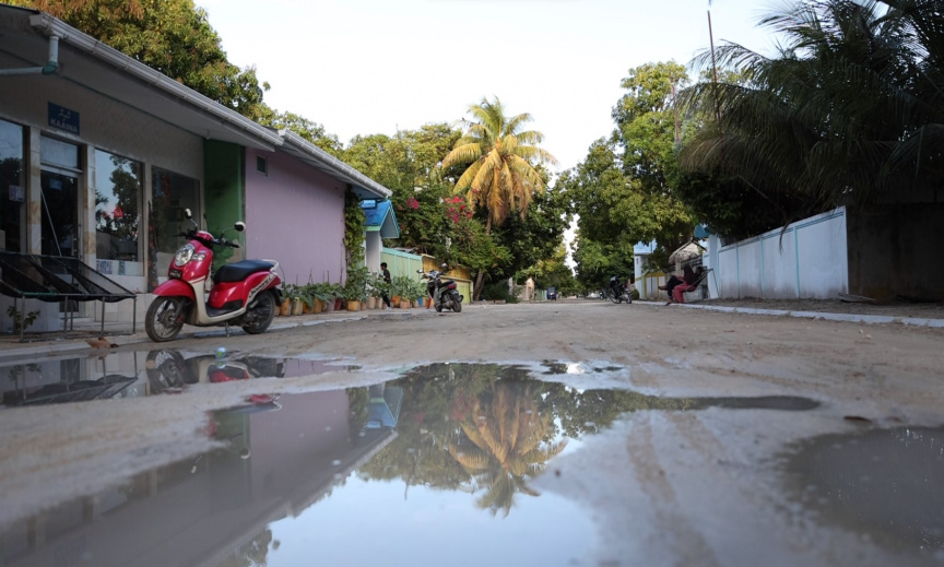 ކުޑަ ވާރޭ ކޮޅެއް ވެހިލުމުން މުލަކުގެ މަގެއް އޮތް ގޮތް -- ސަން ފޮޓޯ