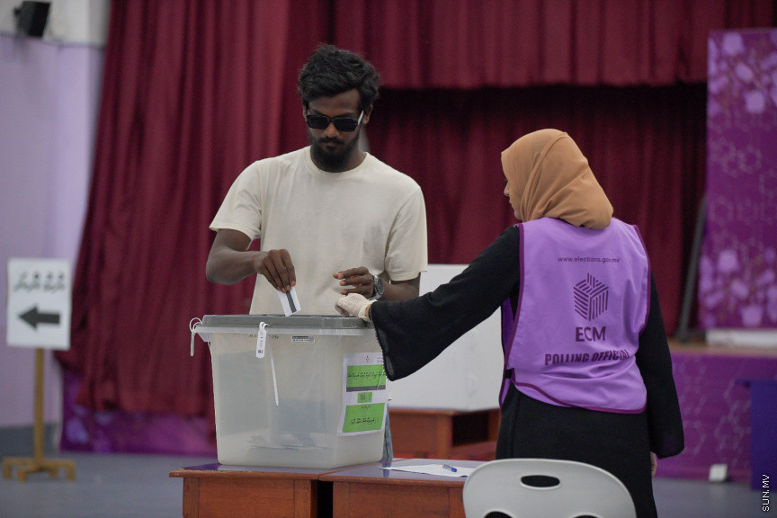ގުރައިދޫ ދާއިރާގެ ރައްޔިތުން ވޯޓުލުމަށް މާލޭގައި ބެހެއްޓި ފޮއްޓަށް މީހަކު ވޯޓުލަނީ --- ސަން ފޮޓޯ/ މުހައްމަދު ޝާތިއު އަބްދުﷲ