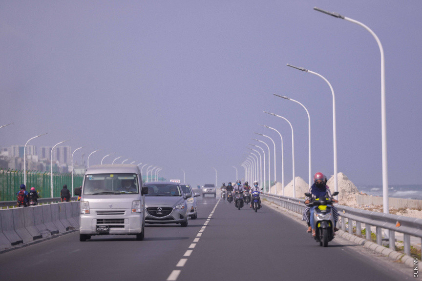ފެބްރުއަރީ 24، 2021: މާލެ/ހުޅުމާލެ ހައިވޭއިން ބަޔަކު މާލެ އަންނަނީ -- ސަން ފޮޓޯ/ ފަޔާޒު މޫސާ